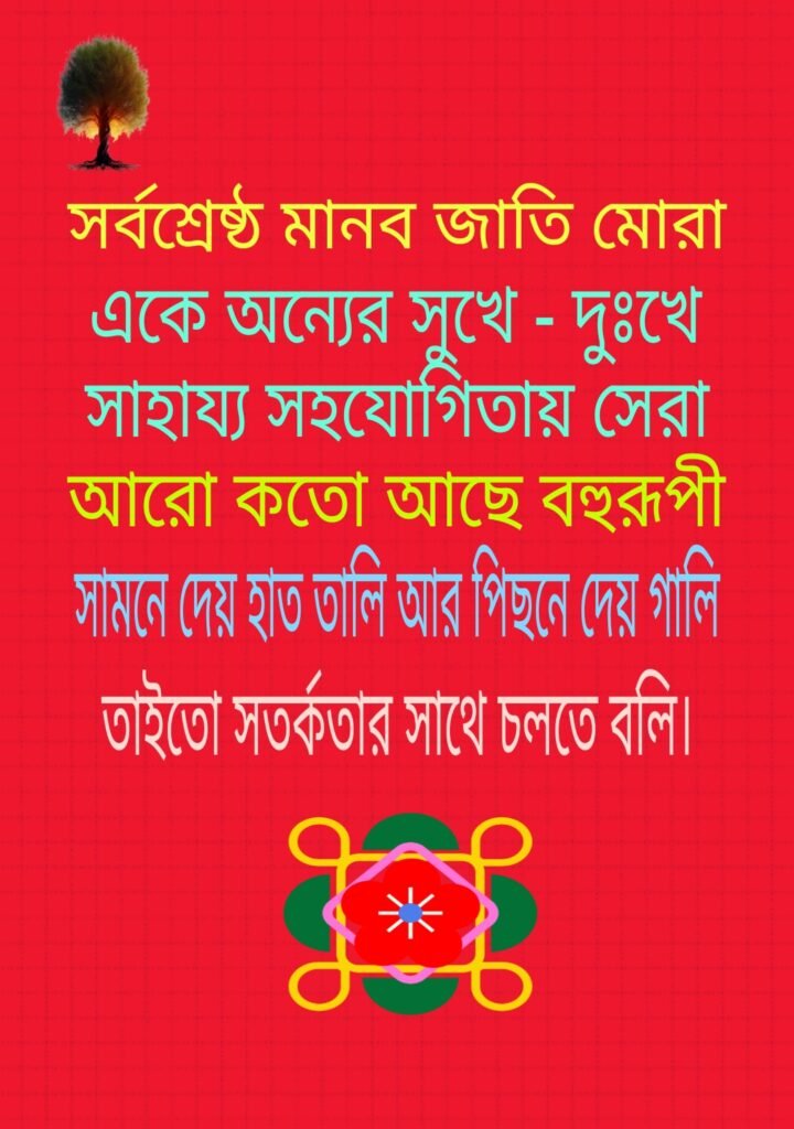 স্বার্থের জন্যে জমায় ভাবচলা ফেরাতে খাতির সৃষ্টিআর ধান্দায় মুনাফা সেরেশেষে আহরণ করে লাভ। সরল প্রকৃতির আছে যারাদুষ্ট লোকদের চক্রান্তে পড়েটাকা কড়ি যা সহায় সম্পদহারানোর পরে ভোগে তারা বাটপারদের যা চলার ভাবতারা সকলের সাথেই তালমিলিয়ে চলে সুযাগ সুবিধাকরে নেয় কতো যেন লাভ। ওদের সার্থসিদ্ধি করার পরনিমিষেই চলে যায় চোখেরআড়ালে অনুসন্ধান করেওতাদের পাওয়া যায়নি খবর। কতো ভয়ানক…